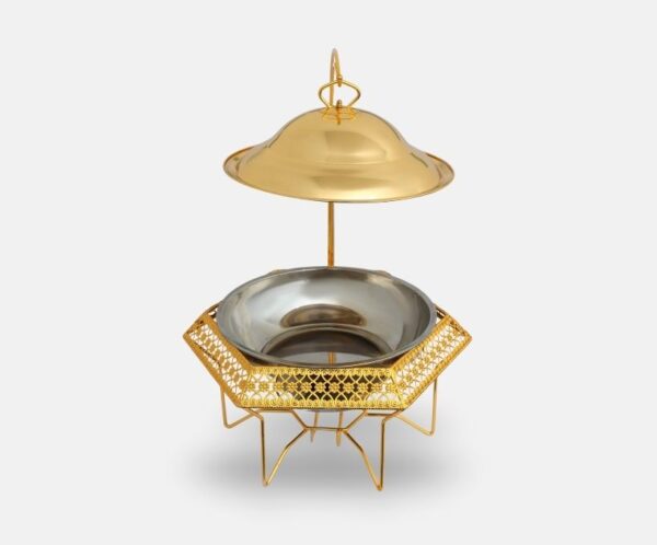 The Gold 4L Hexagon Chafing Dish brings a bold and stylish touch to any buffet or catering setup, combining unique design with practical functionality. Featuring a striking hexagonal shape, this chafing dish stands out beautifully while offering the same reliable heat retention needed for serving hot dishes. Its 4-liter capacity makes it perfect for smaller gatherings, cocktail parties, or specialty stations at larger events. The radiant gold finish adds an extra layer of sophistication, making it a show-stopping centerpiece on your buffet table. Crafted from high-quality, durable materials, this piece ensures longevity and ease of use, helping you create a memorable and elegant dining experience.